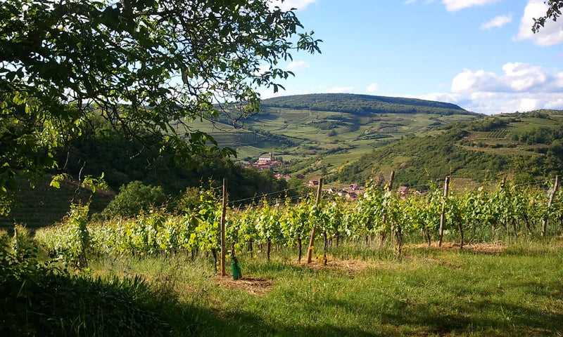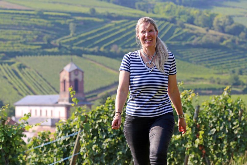 In 2001, she returned to Westhalten, where she had inherited three hectares of old vines from her grandfather. Straight off, she farmed as naturally as possible. Her holdings grew to six hectares spread over 38 tiny parcels planted with traditional varieties: Riesling, Gewürztraminer, Pinot Gris, Pinot Blanc, Sylvaner, Muscat, and Pinot Noir. They are located above her village, on the revered sites of Strangenberg, Dirstelberg, Bollenberg, and Grand Cru Zinnkoepflé, perched at an altitude of 350 meters, and where the micro-climate is Mediterranean-like.