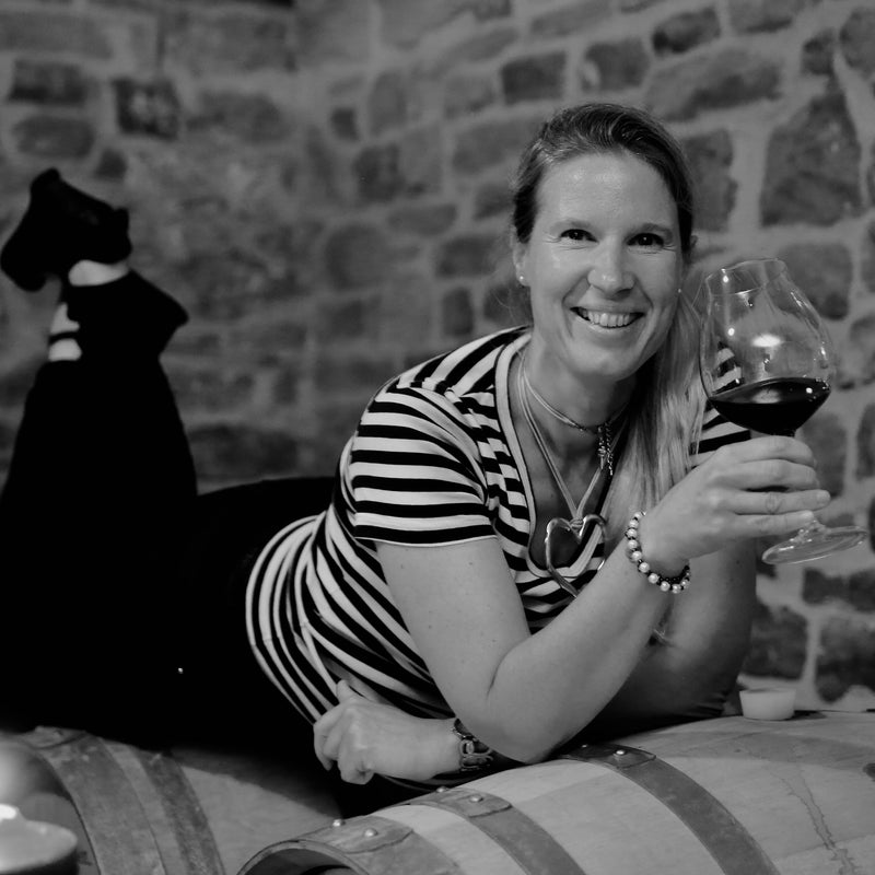 When the hand-picked healthy grapes reach the cellar, they are carefully handled and the interaction is minimal until the wines are ready for ageing in a mix of stainless steel and large oak vats or foudres. However, her Pinot Noir is aged in barrels received from Domaine Ramonet in Burgundy.