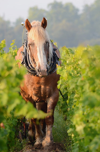 From the start, Laurence and Pascale have been farming their scattered parcels organically and following biodynamic agriculture. The vineyards are planted with six different cépages: Cabernet Sauvignon, Cabernet Franc, Merlot, Petit Verdot, Carménère, and Malbec. The manual work in the vineyard is laborious, yet essential, and the soils are ploughed by Jumpa - their Trait-Breton horse. From time to time, they are assisted by their family and friends.