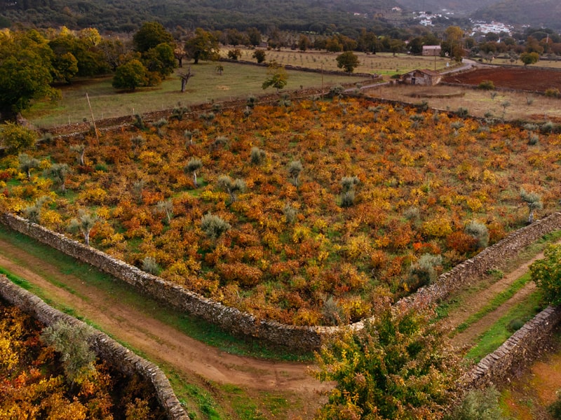 As the bearer of such an old vine heritage, from the beginning of Terrenus, Reguinga has always farmed organically, eschewing the use of any synthetic products, so as to respect the exceptional biodiversity, and lately he has been gingerly adopting biodynamic farming. There, in the Serra de São Mamede Natural Park, the exceptionally deep rooted bush vines, many of them resembling tree trunks, cohabit with the abundant wildlife, such as vipers, wild boars, and eagles. These vineyards are largely surrounded by woods and the vines are planted side by side with ancient almond, pear and olive trees, along with chestnut and cherry trees, two unusual varieties of trees in Alentejo.