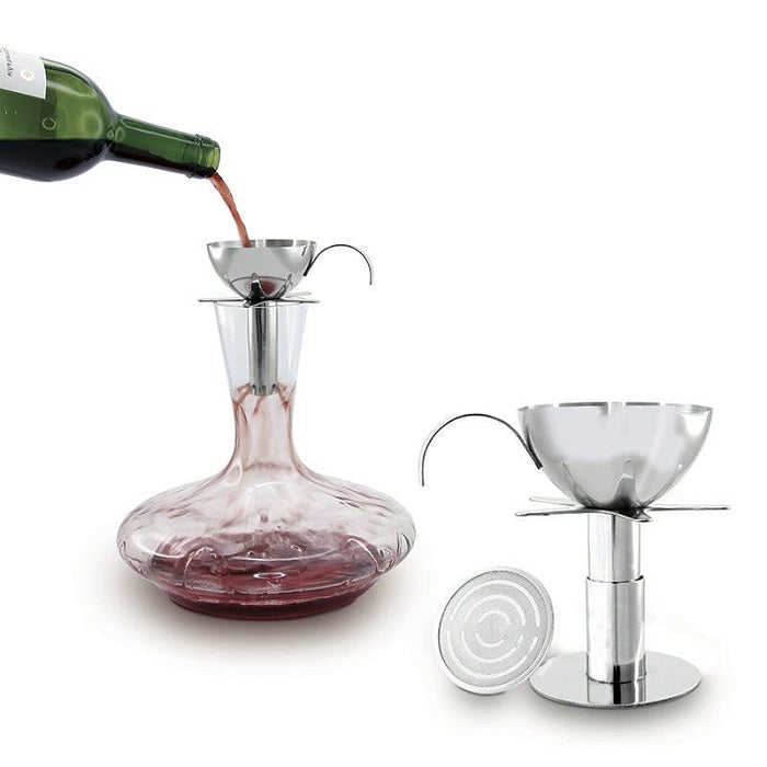 The wine flows alongside the inner walls of the decanter in a slow motion. A star-shape metal piece keeps the funnel centred which enables easy circulation of the air inside the decanter. Easy to collapse and store.