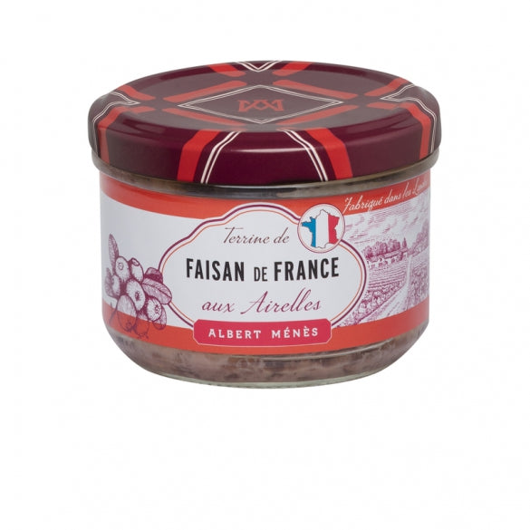 Meat and pork live (origin France), pheasant meat 30% (origin france), egg, cranberries (2%), salt, Marc de Bourgogne (sulfites), spices.