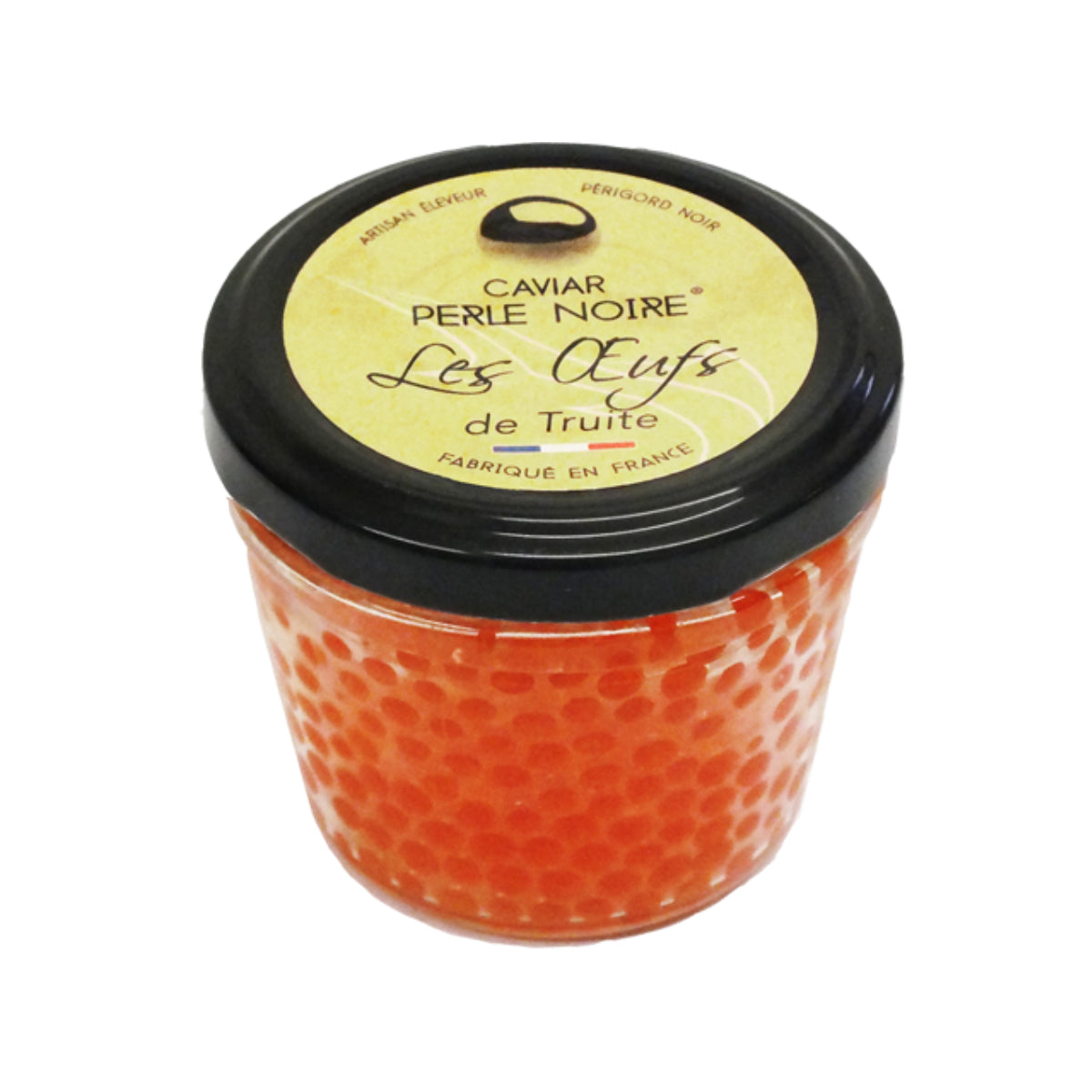 The trouts are farmed by Frédéric Vidal and his team in the Dordogne area of the south west of France. The eggs are collected in december from one to two year old trouts. Following the harvest, the eggs are salted, placed in glass jars, and subsequently pasteurized.