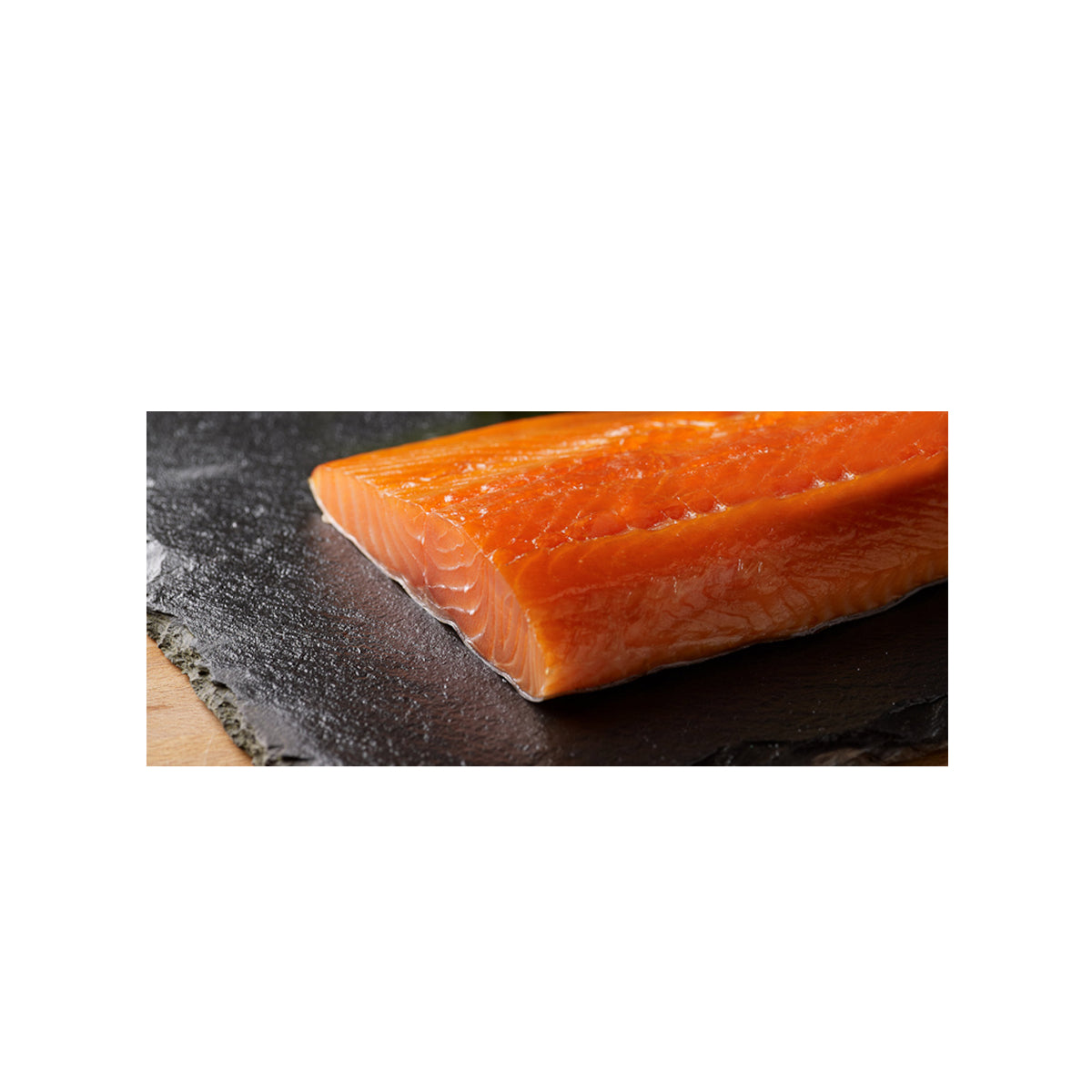 Cold oak smoked salmon unsliced fillet in Duncannon Smokehouse located in Co. Wexford.