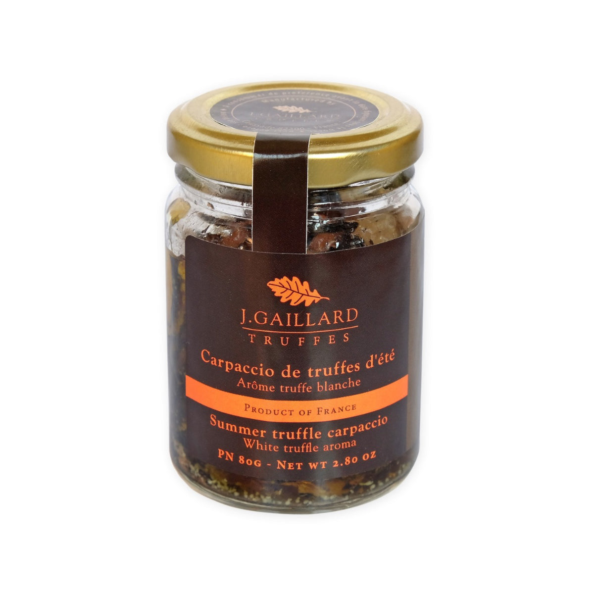 Delicious summer truffles, sliced and preserved in extra virgin olive oil. Adds a touch of luxury to any dishes. Decadent on top of homemade pizzas.